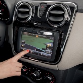 C'est une première chez Dacia (et même chez Renault), le Lodgy propose selon le niveau de finition un système audio MP3 & navigation (avec prise USB et Jack en façade) doté d'un écran tactile de 18cm, appelé MediaNav. Très simple d'usage il se révèle complet, mais on peut déplorer un manque de visibilité en roulant du fait de son positionnement trop bas, ce qui pour un système GPS se révèle un peu gênant.