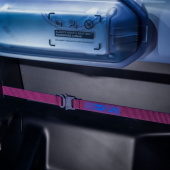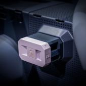 La partie audio et navigation s’effectue via le téléphone, tandis qu’une enceinte Bluetooth diffuse la musique. Le téléphone sert également de clé de démarrage et d’ouverture.
